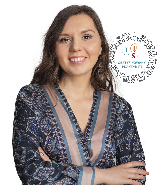 Jestem dyplomowaną praktyczką terapii IFS. Ukończyłam 2 levele szkolenia IFS Institute oraz 3 poziomy szkolenia dla profesjonalistów u Agnieszki Pietlickiej. Ciągle się rozwijam na polskich i zagranicznych grupach praktykujących, webinarach i warsztatach. Pracuję pod ciągłą oficjalną superwizją. Wspieram innych praktyków w zdobywaniu i pogłębianiu wiedzy jako asystent programowy podczas szkoleń organizowanych przez Life Architect.